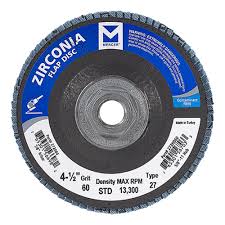 Flap Disc 4 1/2" X 5/8 11 X 60 Grit Zirconia Trimmable Flap Disc (10/Pk) Mercer